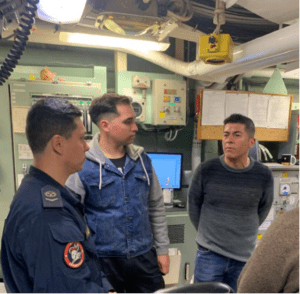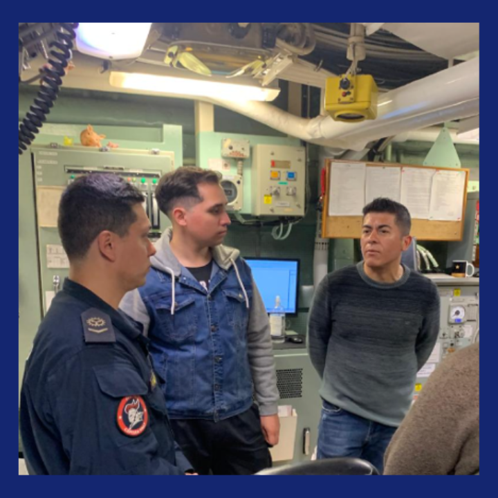 Hoy 04 de diciembre, estudiantes de la carrera de Marina Mercante del Instituto Profesional Cicerón de Valparaíso realizaron una visita formativa a un buque de la Armada de Chile, instancia que permitió observar de manera directa modernas tecnologías de propulsión, sistemas de generación de energía, procesos automatizados a bordo y procedimientos orientados a la protección del medio ambiente marino. Esta experiencia educativa fortaleció los conocimientos técnicos de los futuros oficiales mercantes, acercándolos a las innovaciones que lideran la industria marítima actual.